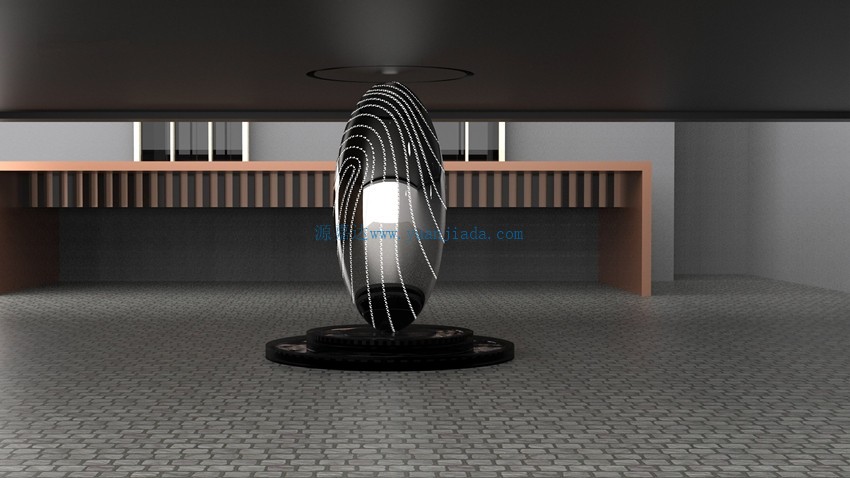 雕塑表面采用鏡面拋光工藝,紋路亞光處理,點狀透光孔沿著指紋的形狀分布,起到裝飾性效果,讓這個雕塑的質(zhì)感形成對比從而產(chǎn)生強烈的視覺效果。