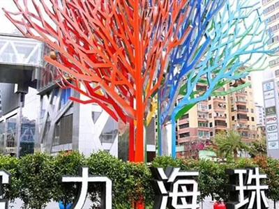 富力海珠城雕塑名為“彩樹”,位于商場門前廣場,獨特炫麗的造型非常吸引人的眼球,這個特質(zhì)很符合作為商場的標(biāo)識。