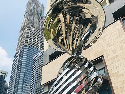 不銹鋼藝術(shù)裝置在廣場(chǎng)、假山、園林、仿古建筑、園林中充分利用其裝飾作用,使內(nèi)容豐富,給整個(gè)大環(huán)境起了很大的烘托作用,美觀性較強(qiáng),成為現(xiàn)代城市雕塑的主流。
